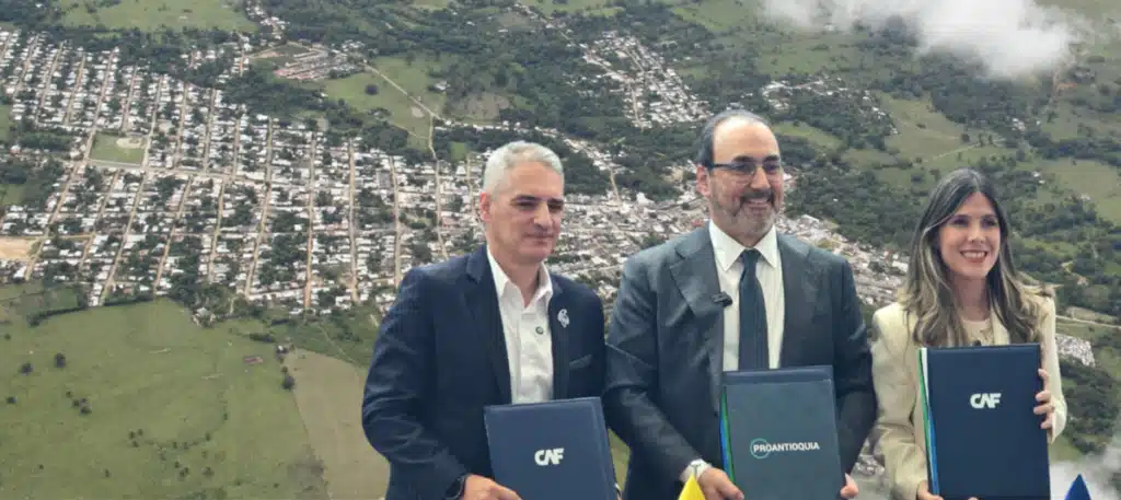 El convenio fue rubricado por el Gobernador de Antioquia, Andrés Julián Rendón, el presidente del CAF, Sergio Díaz Granados, y la directora de ProAntioquia, Juliana Velásquez.